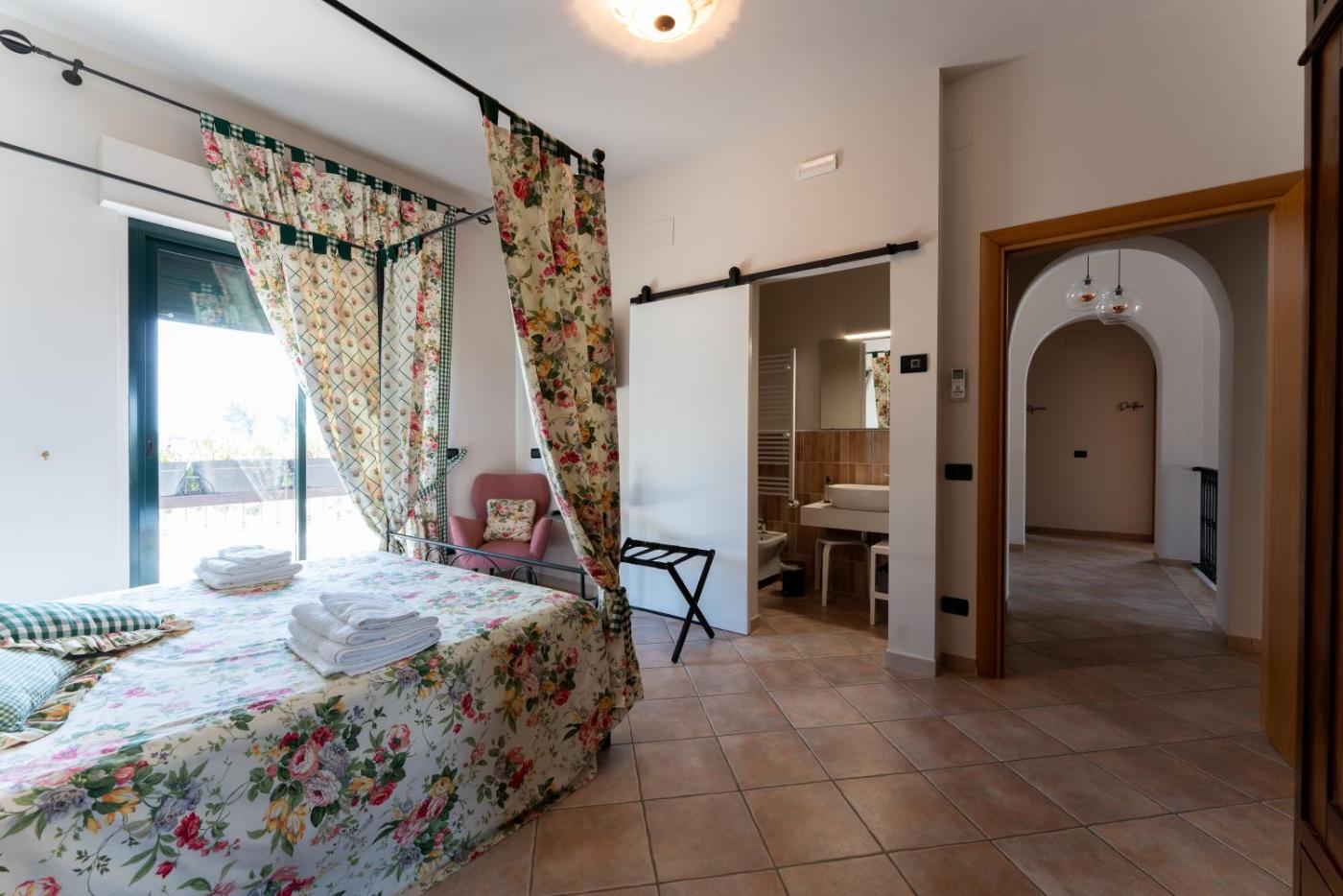 Camera Matrimoniale Deluxe con Balcone. Camera matrimoniale climatizzata con armadio, terrazza con vista sul giardino e bagno privato con doccia.