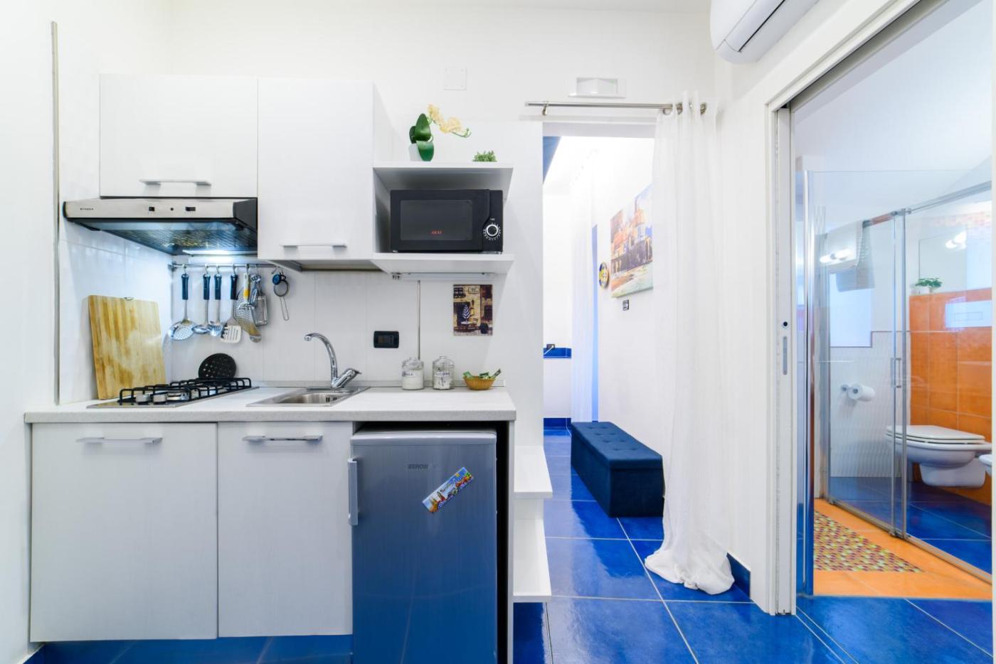 Appartamento Monolocale con Letto King-Size. Boasting a private entrance, this air-conditioned apartment includes a kitchen, 1 bedroom and 1 bathroom with a bidet and a hairdryer. The well-fitted kitchen has a stovetop, a refrigerator, kitchenware and a microwave. The apartment offers a washing machine, a tea and coffee maker, tumble dryer, heating and a TV. The unit has 1 bed.