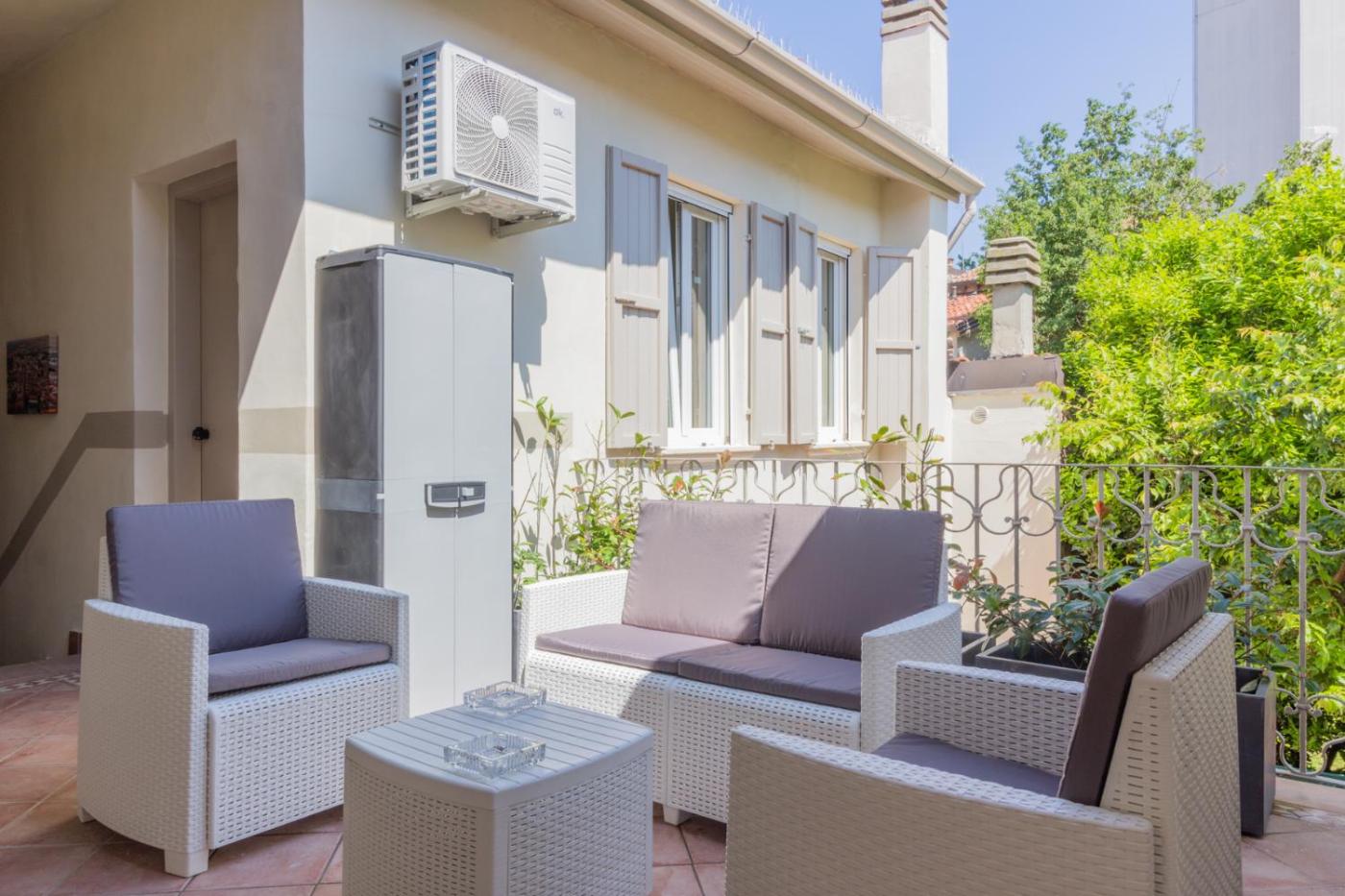 Le camere dispongono di un impianto di aria condizionata, un frigorifero, un minibar e una macchina da caffè, oltre a bidet,di cortesia e scrivania. Ogni camera include un bagno privato completo di doccia e asciugacapelli, mentre alcune camere sono provviste di una cucina con un piano cottura. Presso questo affittacamere, ogni camera è dotata di lenzuola e asciugamani.