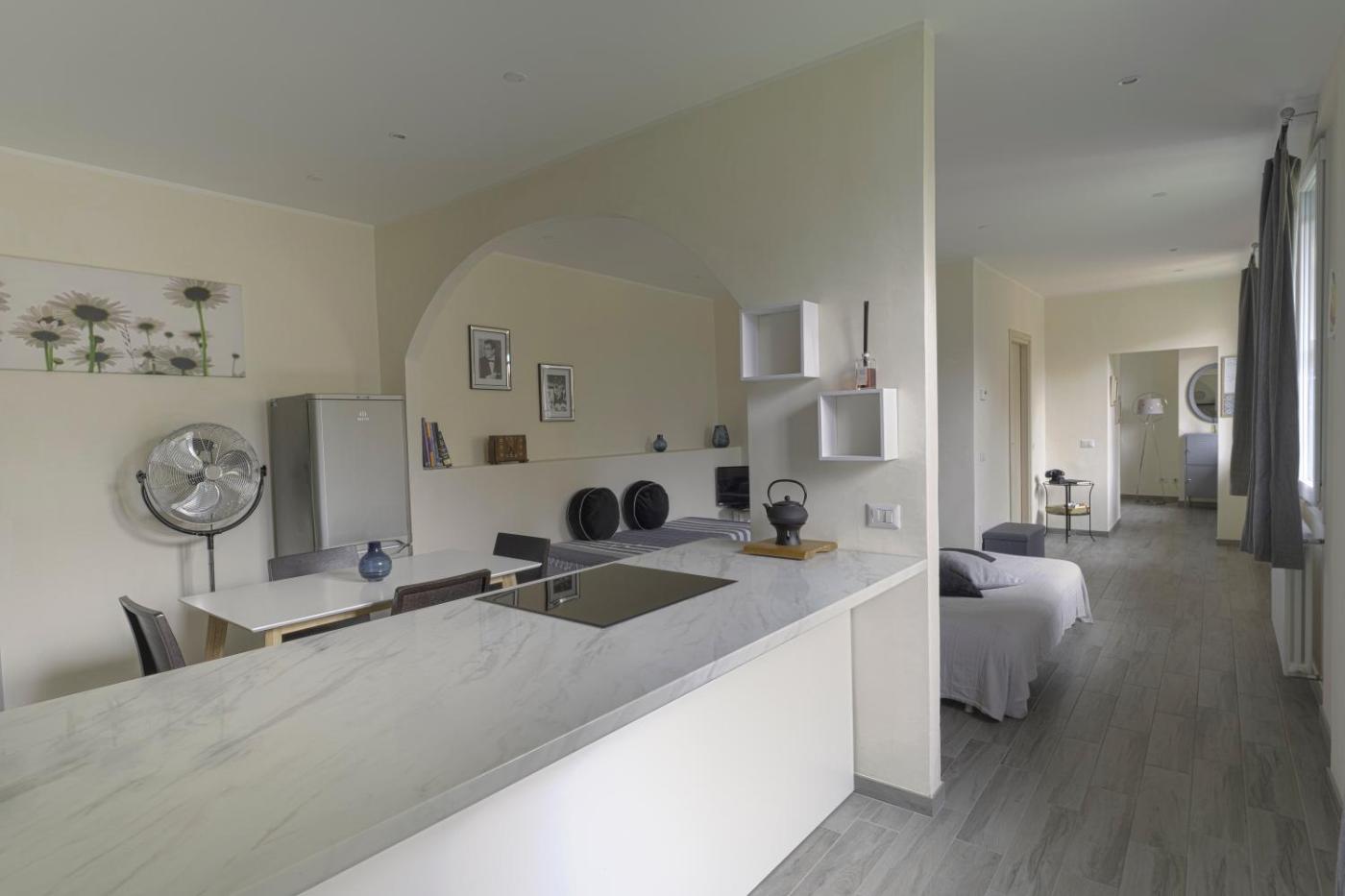 Appartamento con 1 Camera da Letto. This spacious apartment features 1 living room, 1 separate bedroom and 1 bathroom with a walk-in shower and free toiletries. Guests can make meals in the kitchen that has a stovetop, a refrigerator, kitchenware and a microwave. Boasting a terrace with lake views, this apartment also features a private entrance and a flat-screen TV with streaming services. The unit has 3 beds.